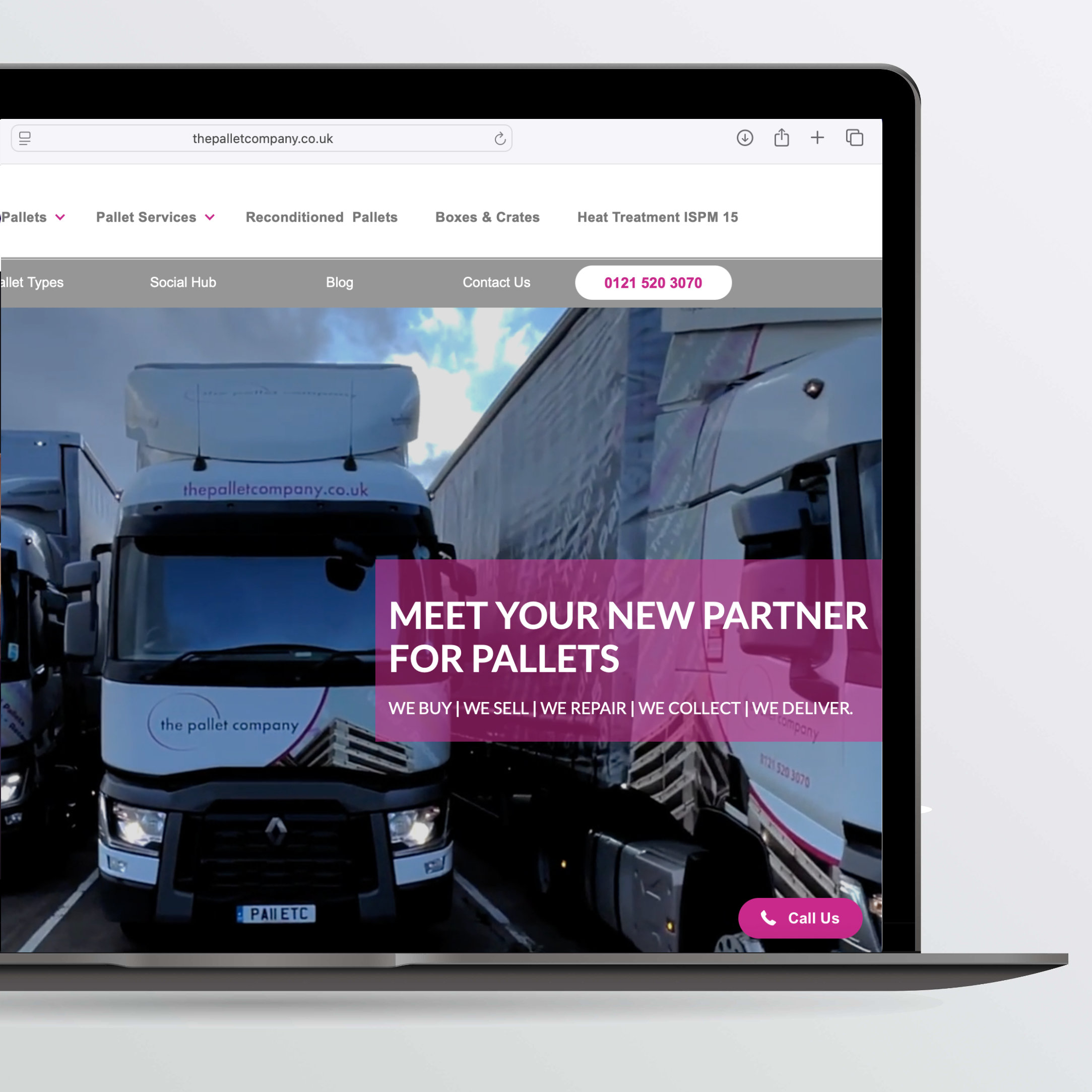 The Pallet Group, our very first client, continues to collaborate closely with us across multiple projects. We designed and developed comprehensive websites for their core companies: The Pallet Company, All Waste Recycling Solutions, and Palletland. Beyond digital, we delivered cohesive brand design, print collateral, vehicle livery, and ongoing marketing consultancy.